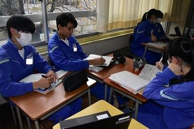 2学期最後の一週間が始まりました。昨日までと違い、この季節らしい気候です。学校では、英語のスピーキングテストや書初めの練習、技術科の作品づくり、学習用タブレットを使用した調べ学習、理科の実験などが行われていました。校庭では校長先生が枝の剪定作業を行っていました。年末年始へ向かって今日も活力みなぎる葛飾中学校。