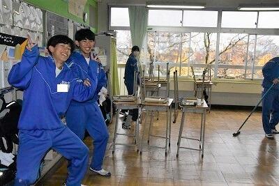 1年生は、学習用タブレットを使って、自分たちで作成したプレゼンテーション資料を使っての発表会、2・3年生は学期末の学年集会が行われました。そして、大掃除の時間には、写真のとおり、感謝の気持ちを込めて、一生懸命掃除に取り組む生徒たちの(先生も)姿が見られました。『笑顔と思いやりあふれる 夢 実現 葛飾中学校』=葛中魂!
