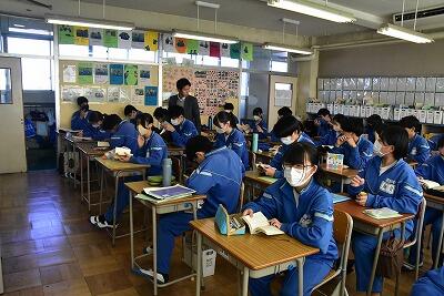 長かったようで短かった4ヶ月の2学期でしたが、行事の取り組みを通して、仲間との協力、団結力が高まりました。しかし、友達と仲良くしすぎて、トラブルも多くなってきました。3学期では休み時間等、落ち着いて過ごしましょう。3学期は「2年生の準備期間」でもあります。自分の目標をもち、行事や部活動で自分から行動し、後輩が困っていたら相談にのれるような先輩を目指して頑張りましょう。先輩になる自覚をもち、充実した3学期をおくりましょう。