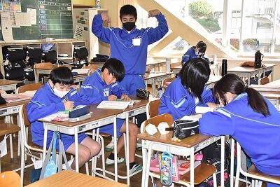 2学期になって初めての行事、中間テストではワークの問題を何度も解いていたり、別の問題集を買って学習に取り組む人がいた反面、テストの前日までワークを取り組んでいる人もいました。しかし、1学期のテストよりも、提出物を期日内に終わらせている人が増えたと感じました。期末テストは中間テストよりも範囲が広くワークの量も多かったです。にもかかわらず、中間テストよりも早くワークを終わらせ、解き直しをしている人が増えていました。その結果、点数や順位が大幅に上がったという人がたくさんいました。中には、順位が落ちてしまった人もいましたが、3学期も期末テストがあるので、冬休み中に分からないところを復習しておきましょう。