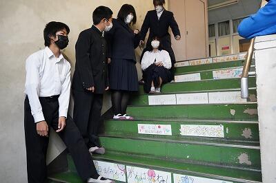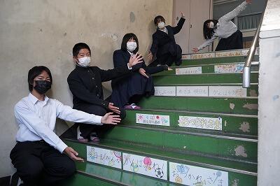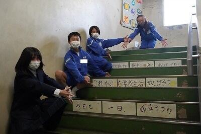 それから生徒会は「スーパー元気さわやかキャンペーン」についても取り組みました。今年のスーパー元気さわやかキャンペーンは、皆さんが思う温かい言葉のアンケートをとり、選ばれた言葉をもとに、各学年の有志の方たちが、カードを作成しました。それをA棟の1階から3期アマでの会談に掲示しています。美術室や音楽室に向かう際には、ぜひ見てみてください。