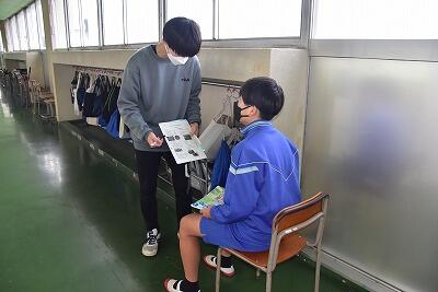 また、11月1日に行われた新入生入学説明会に出席しました。生徒会からは、昨年の生徒会が作成した「葛中の一日ミュービー」と、今年初めての試みとなった「葛中ファッション・チェック」の2つを用意しました。