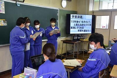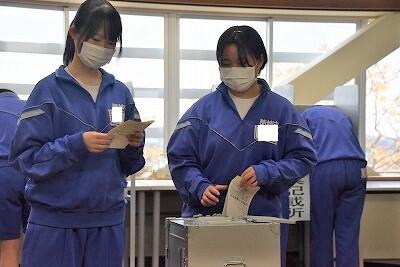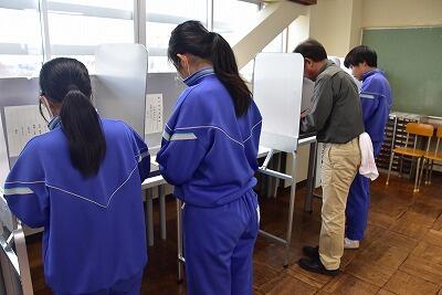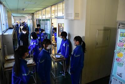 3年生の社会科(公民)の授業で15年後の春日部市の「街づくり」について話し合い、プレゼンテーションをしていました。また、実際の記載台や投票箱を使っての、模擬投票も行われていました。また、放課後に行われた委員会活動では、生徒会のみなさんが、「スーパー元気さわやかキャンペーン」で取り組んだ、全校生徒から集まった「心があったまる言葉」の掲示を行ってくれました。いまも、これからも、ますます「思いやるあふれる葛飾中学校」