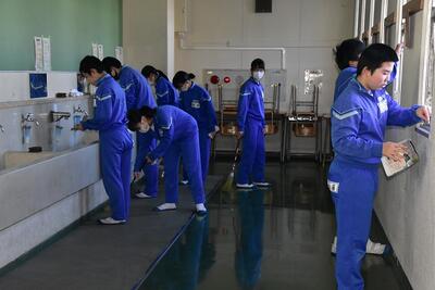 1年生は、学習用タブレットを使って、自分たちで作成したプレゼンテーション資料を使っての発表会、2・3年生は学期末の学年集会が行われました。そして、大掃除の時間には、写真のとおり、感謝の気持ちを込めて、一生懸命掃除に取り組む生徒たちの(先生も)姿が見られました。『笑顔と思いやりあふれる 夢 実現 葛飾中学校』=葛中魂!