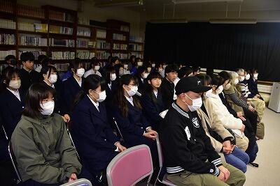 演劇部の公演が行われました。会場となった図書室には、用意された座席は保護者の方々や生徒のみなさんで満席となりました。今日の日のために、演劇部では秋頃から準備や稽古を進めてきました。明日も1演目の公演が行われます。ご来場をお待ちしています。