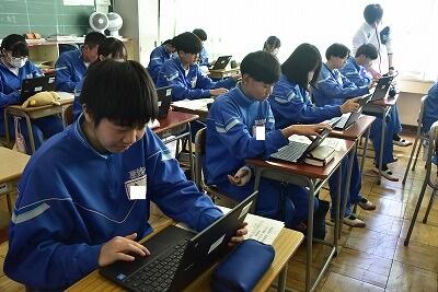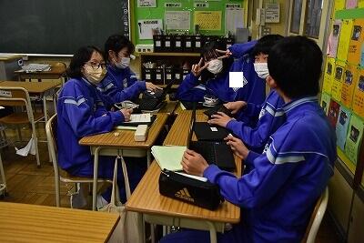 1月第5週が始まりました。2枚目の写真、水槽の底にいる黒くて大きい物体は・・・学校の横を流れる用水路にいたとても大きな「ナマズ」です。今日は来年からCBT(Computer Based Testingting=コンピュータ上で実施される試験)方式で実施される埼玉県学力・学習状況調査の、事前体験が実施されました。
