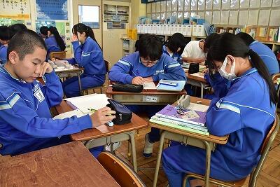 1月第5週が始まりました。2枚目の写真、水槽の底にいる黒くて大きい物体は・・・学校の横を流れる用水路にいたとても大きな「ナマズ」です。今日は来年からCBT(Computer Based Testingting=コンピュータ上で実施される試験)方式で実施される埼玉県学力・学習状況調査の、事前体験が実施されました。