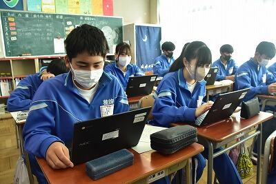 1月第5週が始まりました。2枚目の写真、水槽の底にいる黒くて大きい物体は・・・学校の横を流れる用水路にいたとても大きな「ナマズ」です。今日は来年からCBT(Computer Based Testingting=コンピュータ上で実施される試験)方式で実施される埼玉県学力・学習状況調査の、事前体験が実施されました。
