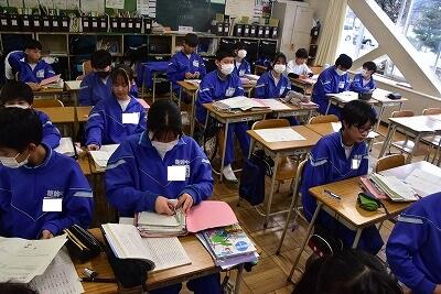 2月第4週が始まりました。新年を迎えて2か月余りが経過したとは・・・今日は生徒会本部役員のみなさんが中心となって、この一年間あらゆる機会に検討を重ねてきた「生活についてのきまり」をオンラインで全校生徒に伝える機会がありました。自らの生活について、自分たち自身で協議を重ねてきました。その、自主的な取り組みは大変素晴らしいものでありました。3年生は、埼玉県公立高等学校入学者選抜の学力検査などを迎えます。体調を万全に整えて全力を尽くして頑張ってくださいね。