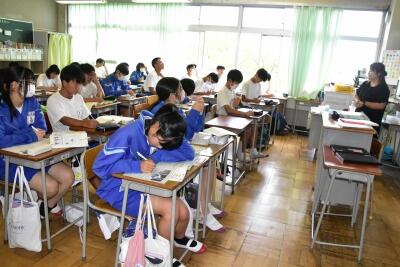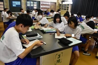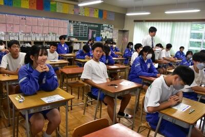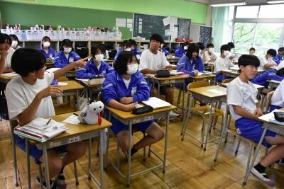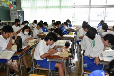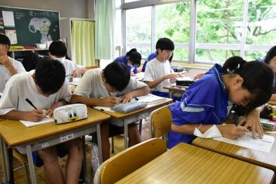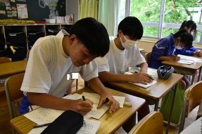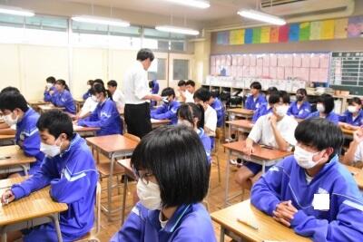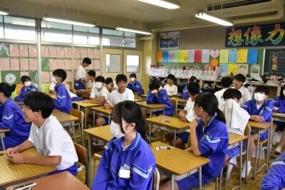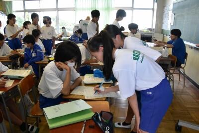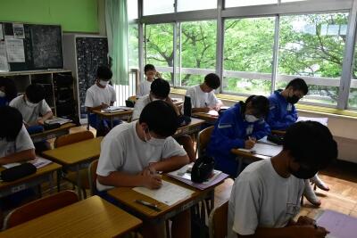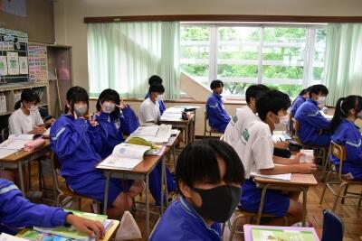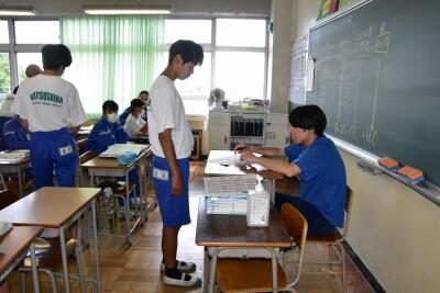 学校歯科医の先生にお越しいただき、歯科検診が行われました。3年生の検診の様子を見に行きましたが、整然と、静粛に待機している様子はさすが葛飾中学校の3年生です。学校の敷地にはたくさんの樹木や植物がありますが、栽培しているジャガイモ、ヒマワリ、アジサイ、ドクダミ、立葵、ツツジなどが花を咲かせ学校を彩ってくれています。生徒会本部役員のみなさんが、定例の朝の挨拶運動を行ってくれました。どうもありがとうございました。