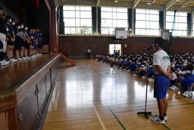 5月最終週がスタートしました。早いもので、令和6年も半分が終わろうとしています。そして、早くも台風が発生し、北上しています。今日も南からの強風が吹きつけています。今後の影響について、天気予報を注視してまいります。低気圧の影響で体調を崩している方も多いと思います。お大事になさってください。今日は授業が終わった後、生徒会のみなさんの企画・運営による「激励会」が行われました。各部活動の代表者が壇上より、大会や発表会に向けての抱負を述べ、仲間たちから盛大な激励の拍手、「葛中魂 オーッ!」の掛け声に合わせての全校生徒でのエールを送りました。また、今日まで葛飾中学校で教育実習をされた2名の先生は今日で最終日となりました。大変お疲れさまでした。ぜひこの経験を生かして生徒に親身に接する先生、よき社会人となってくださいね。
