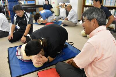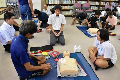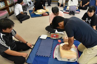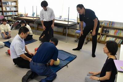 久しぶりにホームページを更新します。酷暑が続いておりますが、みなさまいかがお過ごしでしょうか。夏休みも終わりが近づいてまいりました。そろそろ生活のリズムを整えて、新学期に備えてくださいね。今日は南桜井小、桜川小の先生方にお越しいただき、葛飾中学校区の3校合同研修会を共栄大学から指導者の先生をお招きし、実施しました。小学校の先生方と話し合ったり、学んだり大変有意義な先生たちの勉強会となりました。また、午後からは春日部市消防本部から講師をお招きし、AED研修会を行いました。AED研修会は年間に複数回、毎年必ず行っていますが、いざというときに大切な命を守る手段ですので、当然ではありますが毎回毎回真剣に取り組んでおります。連日水の事故などが発生しています。十分に気を付けて残りの夏休みを過ごしてください。