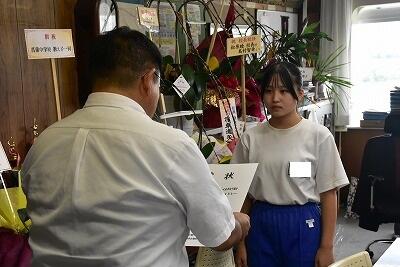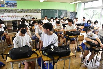 今日から2学期が始まりました。始業式では、4人の代表生徒による「新学期の抱負」が発表され、それぞれ、学校生活や自らの生き方について、堂々と素晴らしい発表を行ってくれました。閉式後には表彰と避難訓練が行われました。今後、台風の襲来、酷暑など生徒を取り巻く環境は厳しい状況が続きますが、健康・安全第一で今学期も学校の教育活動にご協力をお願いいたします。