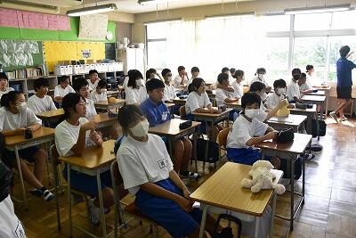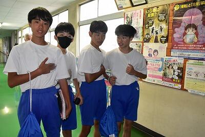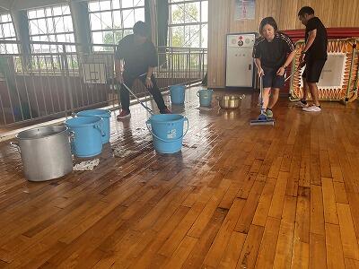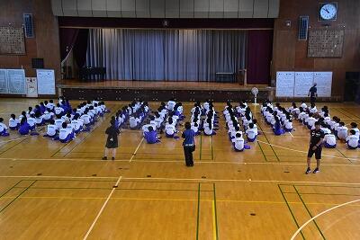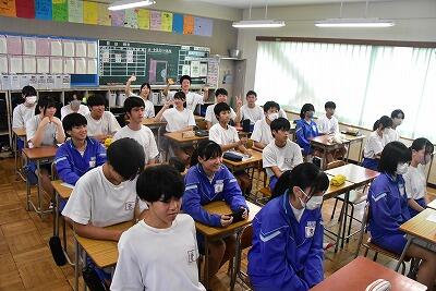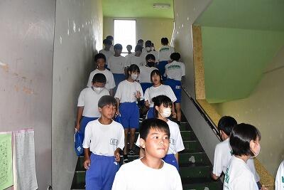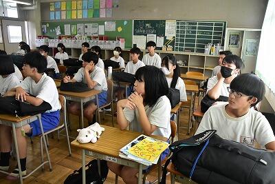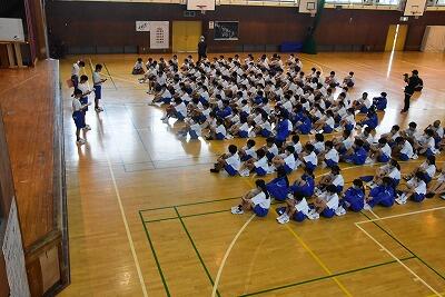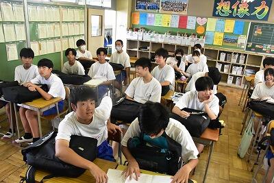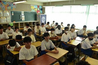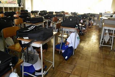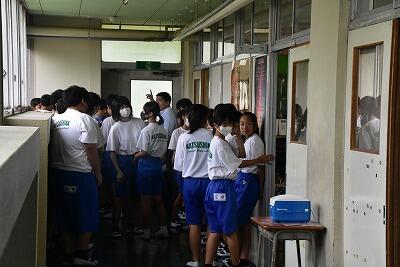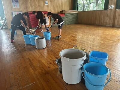 昨日からの大雨を受けて、本日は諸活動は中止とし12:00に完全下校としました。生徒が下校する時間には雨もほとんど降っておりませんでしたので安心しました。休み時間の生徒たちの様子と学年集会の様子をお送りします。体育館をはじめ、学校内外の大雨防風対策を行いました。