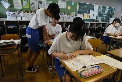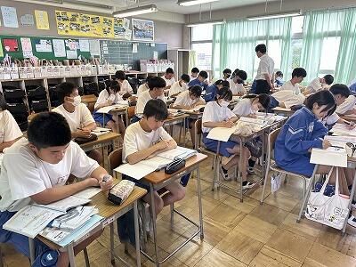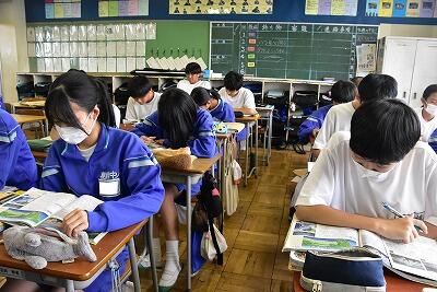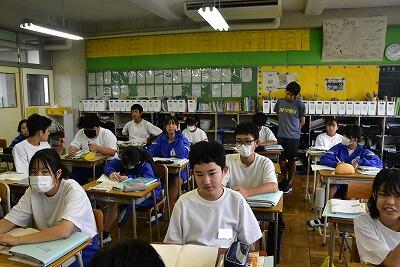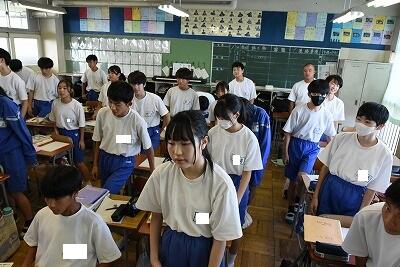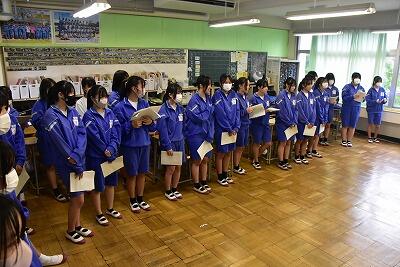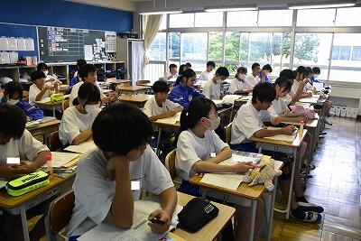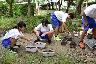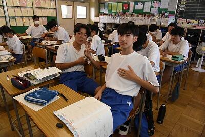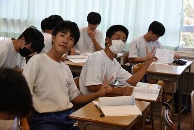 (今日はやや暑さが戻った感はありましたが)ようやく安心して校庭で体育の授業が行えるようになりました。中庭では技術科の授業(栽培)が行われていました。朝から女子テニス部のみなさんが優勝の報告に校長室を訪ねてくれました。そして、新人戦、サッカー部は2回戦も勝利し、決勝戦に臨みましたが惜しくも敗れてしまい、バレー部とともに、10月に行われる決定戦に持ち越しとなりました。たくさんの感動、たくさんの発見をありがとう!