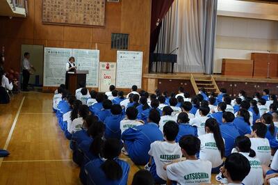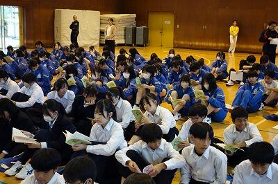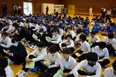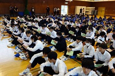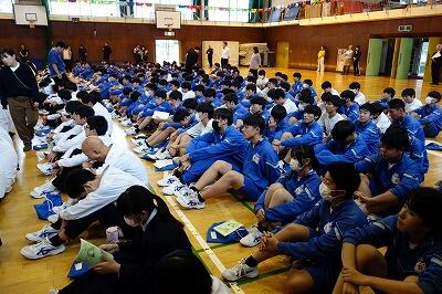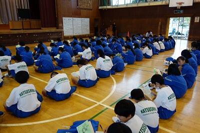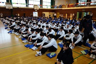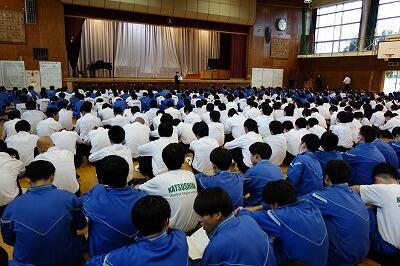 明日の合唱祭を前に、全校合唱の練習と、合唱祭前の集会が開かれました。明日の合唱祭、テーマは「精一杯の僕らの歌声 響かせろ葛中魂 Top of the world」です。生徒のみなさん、全力でがんばってください!保護者の皆様、どうぞご期待ください!