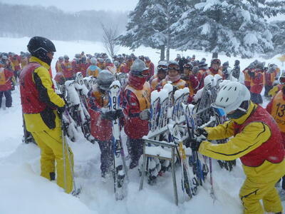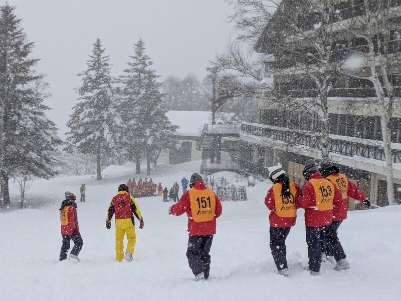 フリー滑走を終えると、全員がホテルの入口で帰着のチェックを受けます。
