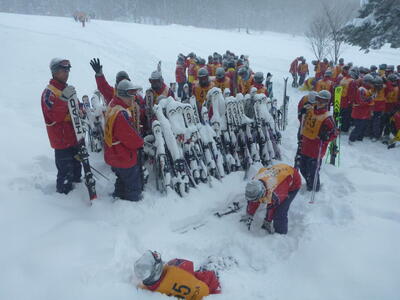 それでも昨夜の積雪は凄まじく、みんなのスキー板はさらに雪に埋もれてしまいました。