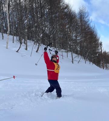 フリー滑走の時間は、スキー班とは関係なく、自分のタイミングで自分で選んだコースを滑る時間です。インストラクターさんの指示無く不安かと思いきや、次々とリフトにのりこみ滑りを楽しんでいました。