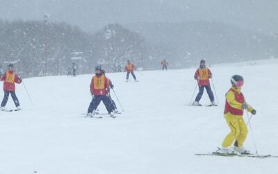 まだ始まったばかりのスキー講習ですが、みんな楽しそうです。
