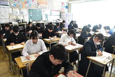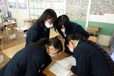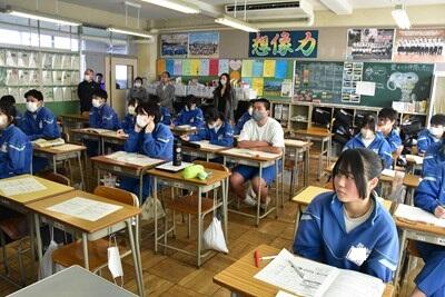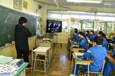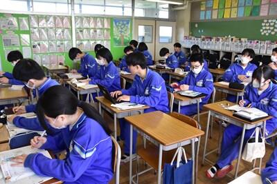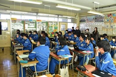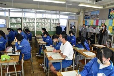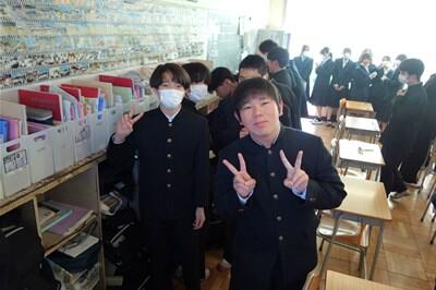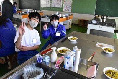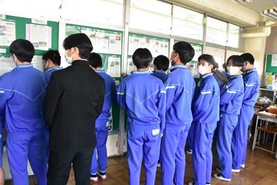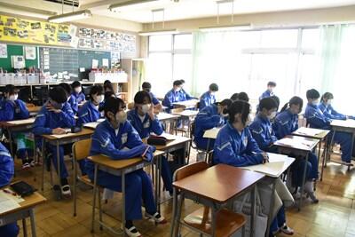 2年生と特別支援学級のみなさんがそれぞれ調理実習でつくったおいしいおいしい鯖の味噌煮とスイートポテトを持ってきてくれました(2年生の写真がなくてごめんさい)。1年生はキャリア教育の第11弾として、オンライン市場調査を専門とする会社の方々を講師にお迎えし、マーケティングリサーチについて楽しく学びました。3年生は教室で卒業式関連の取組を行っていました。