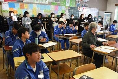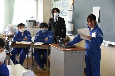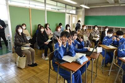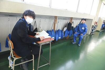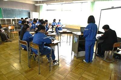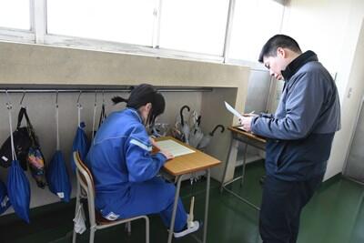 朝から大変な天候、まさかの大雪でした。今日は2年生の保護者会が行われました。授業参観では、高等学校についてのプレゼンテーションが行われていました。それぞれ、とてもよく調べ、効果的なプレゼンを行っていました。その後、学級懇談会が開かれました。保護者の皆様方にはお足元の悪い中、お越しいただきましてどうもありがとうございました。 1年生は廊下で学年末の二者面談を行っていました。