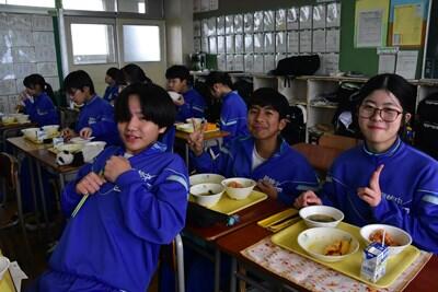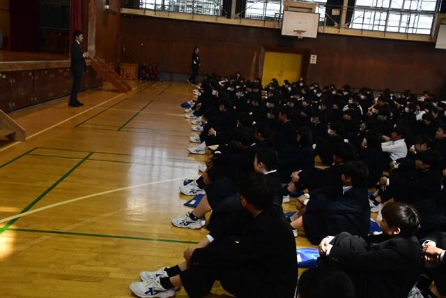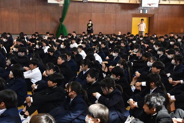 今日の1年生、2年生、学年集会と大掃除でした。1年間の最後に、お世話になった校舎をピカピカに磨き上げてくれました。明日は修了式です。よろしくお願いいたします。