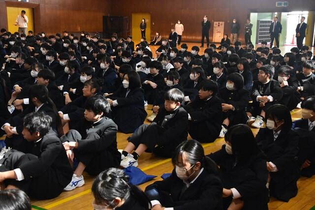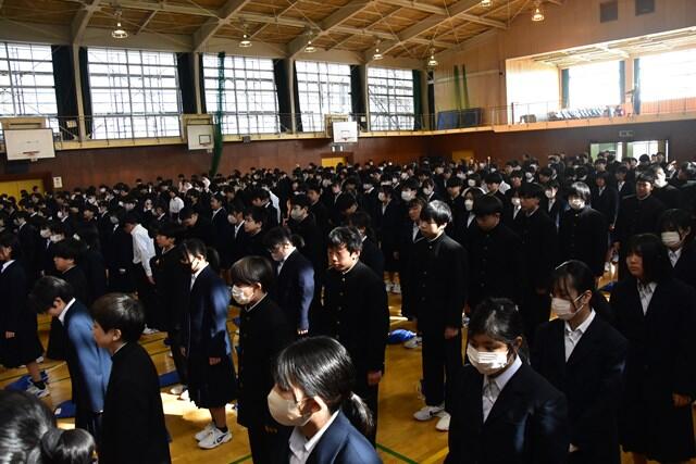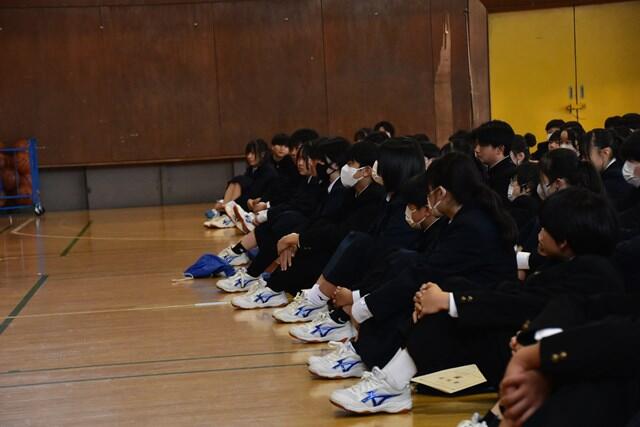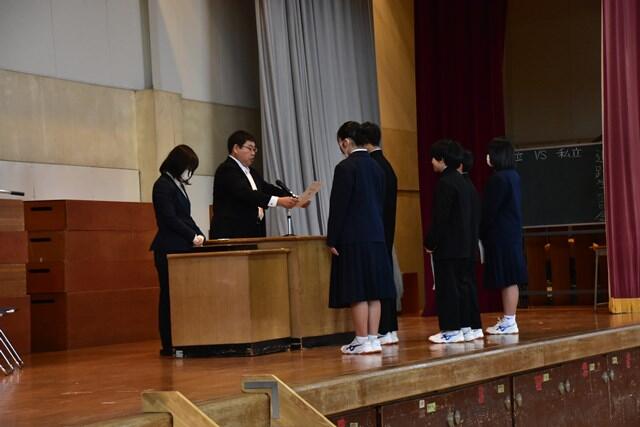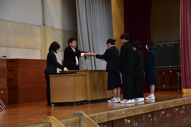 令和6年度の修了式が行われました。終了証を授与したのち、4名の代表生徒により1年間の総括や新学年への抱負が大変立派に述べられました。一年間の締めくくりにふさわしい厳粛な修了式となりました。また、保護者のみなさまのご理解とご協力のおかげで、令和6年度も葛飾中学校は無事に教育活動を行うことができました。心より感謝申し上げます。令和7年度も教職員一丸となり教育活動にあたってまいります。どうぞよろしくお願いいたします。