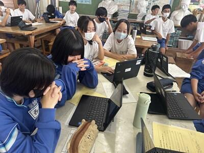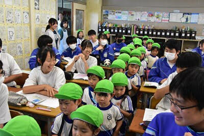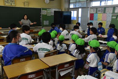 台風⇒熱帯低気圧の影響で、午前中から時折激しい雨が降っています。1・3年生の楽しい給食の様子と2年生の授業の様子をお送りします。