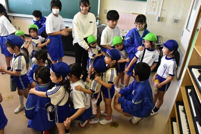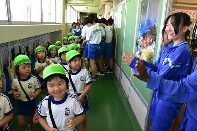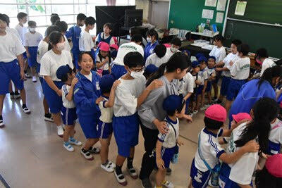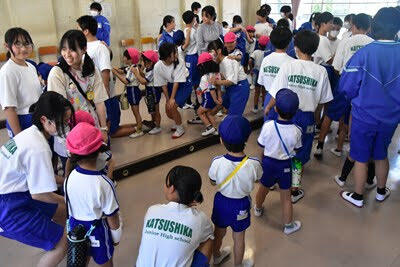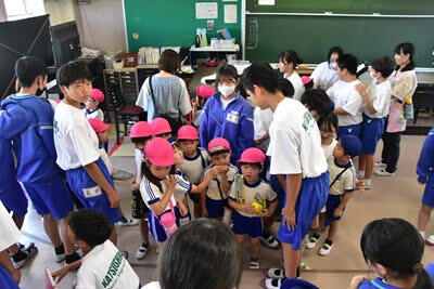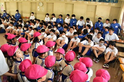 地域学校協働活動の一環として「庄和すずらん幼稚園」の園児のみなさんと先生方が来校し、葛飾中の生徒たちと交流を行いました。上履きに履き替えて、図書室でご挨拶をした後は、学校探検、「園歌」と「校歌」の歌いあい、一緒にそろって「お歌」の時間の後は、中学生との交流の時間でした。園児のみなさんも、すっかり中学生のお兄さん、お姉さんたちと仲良しになり、楽しい時間を過ごしました。次は、葛飾中の生徒たちが幼稚園にお邪魔することになっています。今後とも活発な交流をよろしくお願いします。