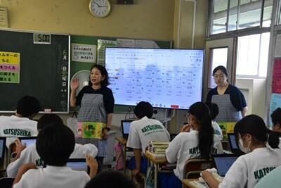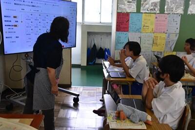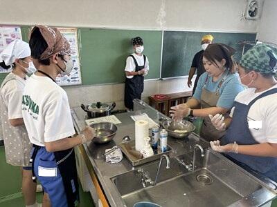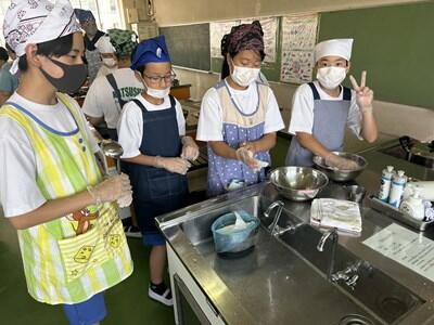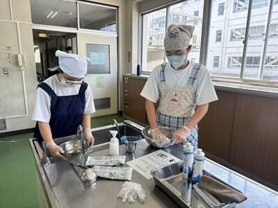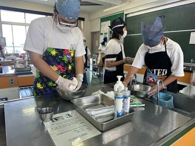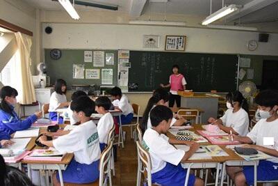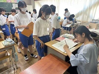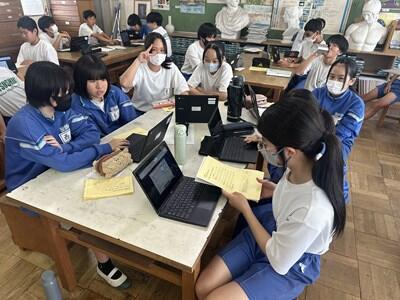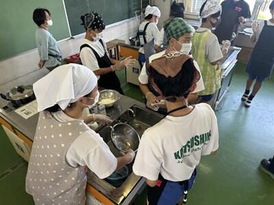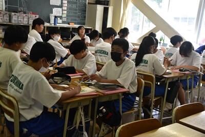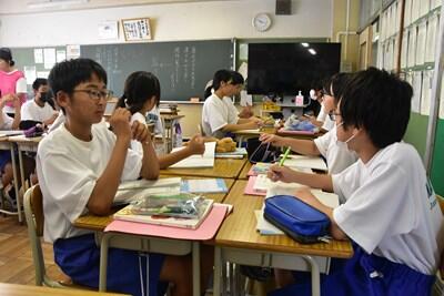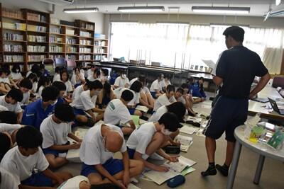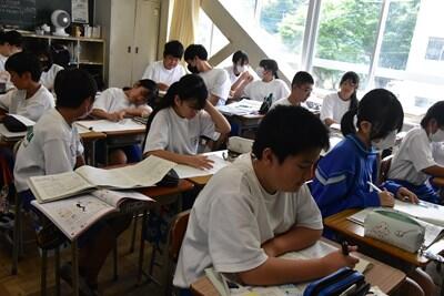 昨日、一昨日より過ごしやすい感覚の(これでも十分に暑いのだが)一日となりました。今日は、校区内の小中連携事業の一環として、本校の家庭科の先生、栄養教諭と、小学校の栄養技師の先生による食育の授業が行われました。一生涯付き合うこととなる、大切な自分の身体の健康のための大変有意義な学習となりました。