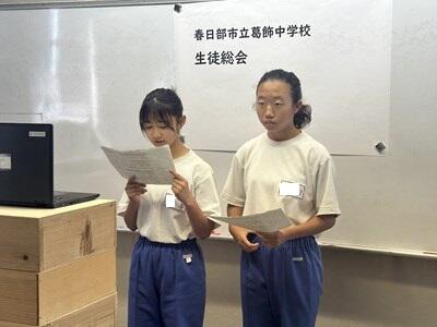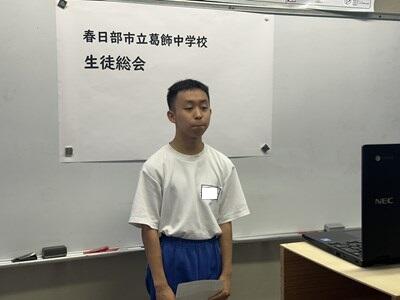 生徒総会は生徒会の最高議決機関です。民主主義の基本は皆で決めて、決まったことを、皆で守ることです。また、生徒総会は、葛飾中の課題を葛中生全員が一同に会し議論を尽くし、それらを通して、生徒の手で葛飾中をより良くするためにあるものです。これからもぜひ、みんなの葛中を、みなさんの手で、葛中魂あふれる葛飾中をつくりあげてください!