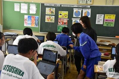 昨年に引き続き、アメリカ・ウィスコンシン州オークレア市立のメモリアル高校で日本語を学ばれているみなさんが来校し、葛飾中学校で一日日本の学校体験を行いました。体験の内容は、家庭科の「みたらし団子づくり」、書道、音楽での日本の唱歌、箏体験、そして、各学級で本校生徒たちとも交流を深めました。メモリアル高校とは、メモリアル高校で日本語を教えられている先生が、葛飾中学校の卒業生であることから、以前より庄和地区でのホームステイや桜川小学校との交流を行っており、昨年度から葛飾中学校との交流を行っております。ご協力いただいたみなさん、どうもありがとうございました。
