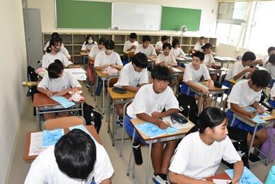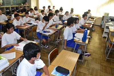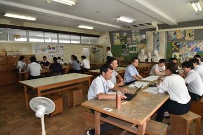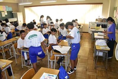 相変わらず暑すぎる日が続いています。8月第5週、金曜日からはいよいよ2学期が始まります。今日は午前中に研修会(先生方の勉強会!)、その後、先生方で主に2・3年生が仮設校舎で新学期を迎えるための準備を行いました。