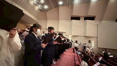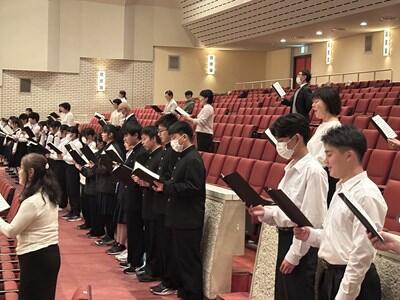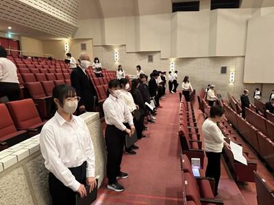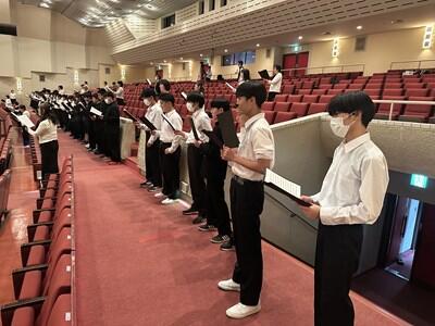 正和工業にじいろホールで開催された「かすかべ音楽祭2025」クラシックステージの最後のプログラム「花は咲く」で、市民のみなさんと共に中学生有志が春日部フィルハーモニー管弦楽団と共演し、本校からも18名の生徒が出演しました。(写真はリハーサル時)