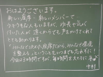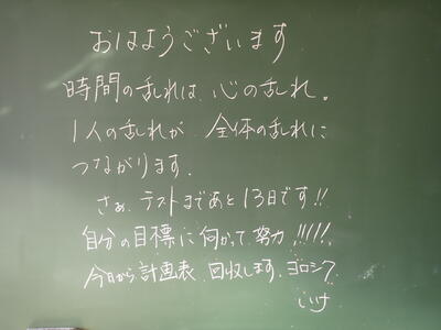 先週まで教育実習をした波田野先生からのメッセージです。良い先生になってください。