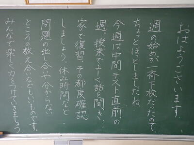 今日も夏日です。まだ夏服が必要ですね。今日は先生方の研修があるためいつもより早めに放課となりました。