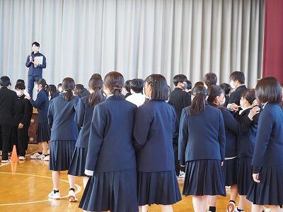 以上の三つのことを達成するためには、中学校3年間で学んだこと、体験したことを存分に発揮する必要があると思います。1、2、3年生で築いた団結力や向上心を3年間の集大成として、3年生らしい姿を見せていきましょう。最後に、繰り返しになりますが、卒業という進路の分岐点は全員に訪れます。卒業式を全員が笑顔で迎えることができるように、約3か月の短い期間ではありますが、一人一人が前を向いて進んでいきましょう。