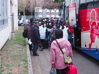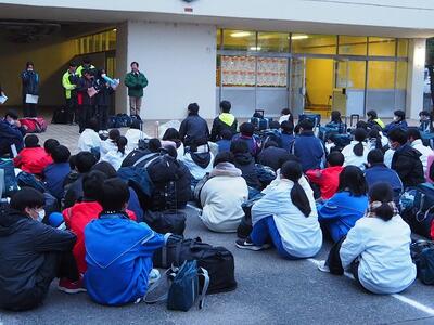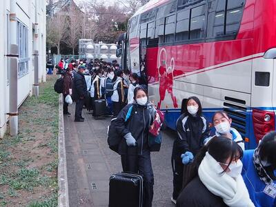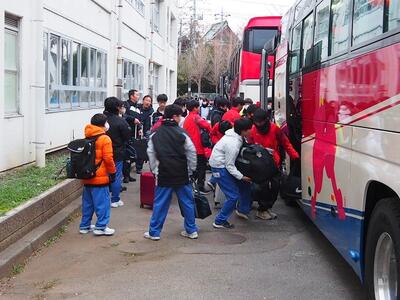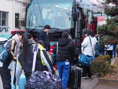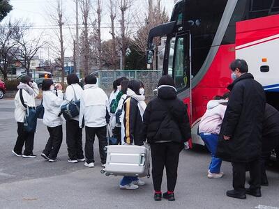 出発式の様子やバスへの乗車の様子をご覧ください。