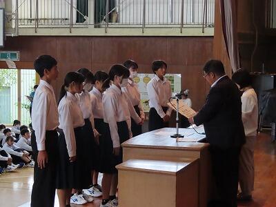 今日、10月10日は、1964年(昭和39年)に開催された東京五輪の開会式でした。その後、「スポーツにしたしみ、健康な心身をつちかう日」として制定された国民の祝日=「体育の日」となりました。令和2年からは「スポーツの日」名称が改められ、今年は10月14日(月)がスポーツの日となっています。今日は、新人戦をはじめ、さまざまな分野で活躍した葛中生たちを全校で讃える表彰式が行われました。