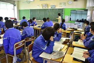 連休も終わり、今日からまた学校生活がスタートしました。今日は、葛中生の昼休みの憩いの場である校庭が、大雨の影響で使用できませんでした。写真は昼休みの様子です。
