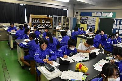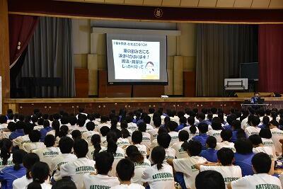 10月になりました。10月の葛飾中もいろいろな行事が盛りだくさんです。今月も充実した一か月となりますようご協力をよろしくお願いいたします。今日は、定期的に実施している、地域の小学校・中学校連携事業の一環としての「食育」の授業が行われました。今回は3年生での実施ですが、どのクラスでも健康な身体づくりを考えた食生活について真剣に考え、先生の話に耳を傾けていました。
