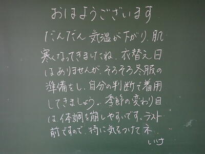 今日も夏日です。まだ夏服が必要ですね。今日は先生方の研修があるためいつもより早めに放課となりました。
