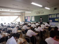 今日は、各学年の体育祭練習が予定されていましたが、天候不良のため1,3学年は体育館で行いました。限られた練習しかできなくて残念でしたが、生徒はよく取り組んでいました。