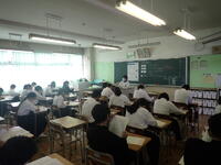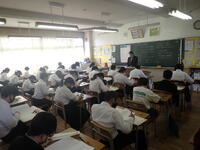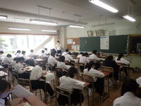 今日は全学年埼玉県学力・学習状況調査を行いました。2,3年生は国・数・英、1年生は国・数、そして全ての学年で、学習に対する意欲や学習方法、さらに家庭での生活習慣等に関する「質問紙調査」を行いました。1年生は中学校生活初めてのテスト、2,3年生は連日のテストでしたが、どの学年も真剣に取り組んでいました。