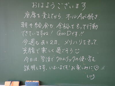 1年生が5時間目、2年生が6時間目を使ってChromeBook(タブレット端末)の研修を行いました。今回は各教室でログインの仕方や端末のルール・マナーを学びました。端末保管庫の不具合で1クラスができませんでしたが、みんな一生懸命取り組んでいました。