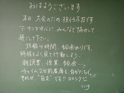これを聞いて本当に私自身もうれしくなりました。心身や技術だけでなく心も確実に育っていると確信した瞬間でした。教頭先生はこんなこともお話ししてくれました。「小学校の登校指導をしているときに、近くを通る葛飾中生がみんなあいさつしてくれるんですよ」と。校内でのあいさつの多さについては何度かこのブログでも触れましたが、校外でも同じだったんですね。「地域の子葛中生」これからもどんどんあいさつして、もっともっと地域から愛される葛飾中にしていきたいですね。