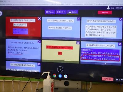 そして、タブレットに班でまとめた意見や考えを入力していきます。