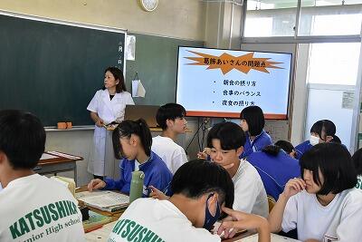 昨日とは打って変わって秋の気配が感じられる一日となりました。今日は、春日部市内の小・中・義務教育学校の先生方や春日部市教育委員会の先生が来校され、地域の小中連携事業による「食育」の授業研究会が行われました。生徒たちはたくさんの参観者の中でも、いつも通り和やかな雰囲気の中で意見を出し合ったり、協議し、堂々と発表を行っていました。わたしたちの心身をつくる大切な「食」。とくに思春期真っ只中の中学生にとっては一生を左右するような大切な問題でもあります。この機会に学んだ事柄は、生涯を健康に生き抜くための大きな糧となることと思います。