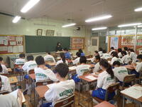 1年生は5時間目に、「薬物乱用防止・非行防止教室」を行いました。その中で、たばこは依存症の怖さだけでなく、副流煙により吸っている人よりも周りの人の方が危険が高い、とのことでした。ニコチンが2.8倍、タールが3.4倍、一酸化炭素はなんと4.7倍になるそうです。また、エナジードリンクについても、カフェインがコーヒーの3杯分入っているので、それを大量の砂糖(小さじ13杯分)で味を調えているそうです。カフェインの副作用として頭痛、集中力の低下、だるさなどが出てくることも教えていただきました。